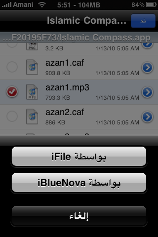 * إمكانية نقل الملفات عن طريق الـ Bluetooth بواسطة البرنامج المشهور iBlueNova الى أي من الأجهزة الاخرى المدعومة.