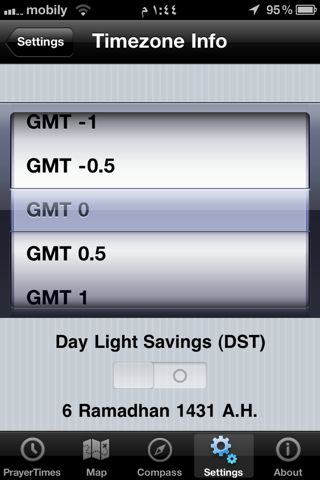 كما يمكنك اعداد وضبط منطقتك الزمنية بحسب البعد والقرب عن توقيت غرينتش، وكذلك ضبط التاريخ الهجري زادة او نقصانا ليتوافق مع تاريخ بلدك.