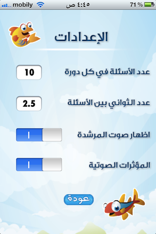 ايضا يمكنك تفعيل او عدم تفعيل صوت المرشدة او الموجهة وكذلك صوت المؤثرات التي تهنئ الطفل باجابته.