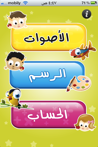 بداية روعي في تصميم واجهات التطبيق والوانه مناسبته لتلك الفئة السنية من صغار المستخدمين وهذا من حسن اتقان العمل والتصميم ومعرفة الفئة التي سيتوجه له البرنامج واستخدامهم لها، حيث لا ترى الرسمية والصرامة في ذلك التصميم وألوانه بل تجد الالوان الفاقعة والشرحة كالأصفر والسماوي والوردي، وكذلك استخدام الرسمات الكرتونية المعبرة كصور الأطفال والطيور، وحتى في استخدام الأصوات المستعملة لشرح توجيهات البرنامج نجدهم قد استخدموا صوت طفلة لا رجل او صوت آلي لا معنى له.