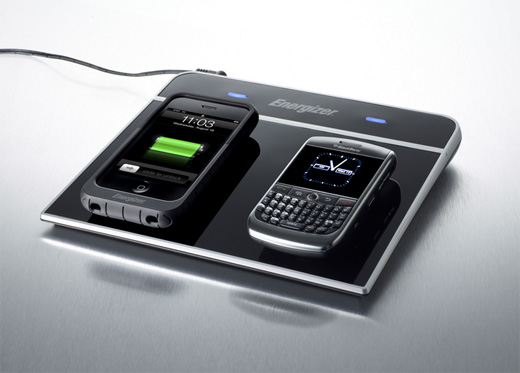 انرجايزر عملاق صناعة البطاريات في العالم والتي تكلمنا سابقا عن بعض منتجاتها وملحقاتها للآي فون، تحقق لنا هذا الحلم وبشكل جميل عبر هذا الشاحن اللاسلكي ذو السطح الأملس، والذي لا يحتاج منك سوى أن تضع جهازك الآي فون أو البلاك بيري عليه لتبدأ عملية شحنه بالكهرباء.