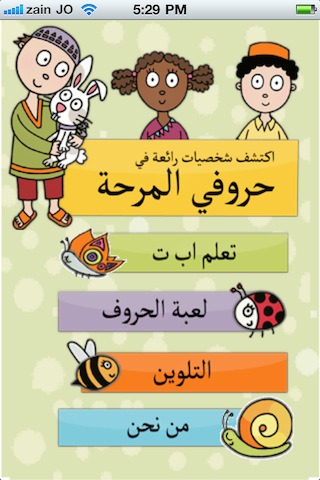 هو تطبيق لتعليم الابجدية بشكل ممتع للأطفال من خلال ربطها بعدد كبير من الشخصيات الكرتونية المميزة والجذابة وباستخدام أصوات طفولية مميزة. يقدم التطبيق 28 شخصية جذابة للاطفال مع 28 حيوان لطيف في اطار من الشراكة والصداقة بينهما متوفر للايفون والايباد. التطبيق هو تعاون بين شركة الهدهد للمحتوى الابداعي للأطفال و شركة برمجيات، لقد اختبرت التطبيق بنفسي وبرغم بساطته الا انه جذاب للأطفال وبالفعل قد يتعلمون معه اشياء مفيدة. نشكر شركة برمجيات و الهدهد على هذا التعاون الرائع.