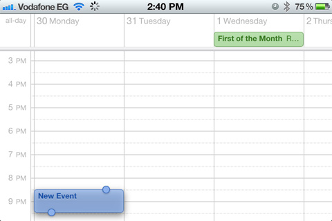 تطبيق الرزنامة سيقدم لك مظهراً جديداً لعرض الأسبوع في الوضع الأفقي، وستمكنك هذه الطريقة من الإبحار في الأسابيع المختلفة من خلال تحريك الجدول جهة اليمين أو اليسار.بالإضافة إلى مظهراً آخراً لعرض الرزنامة السنوية على الآي باد، ومن الإضافات الرائعة أنه يمكنك تعديل مواعيدك المسجلة عن طريق سحب مربع الموعد ليغطي وقت الحدث كاملاً عن طريق السحب اليدوي. ونود أن نذكر أن خاصيةiCloud ستمكنك من مزامنة مواعيدك مع أصدقائك وأقاربك ومزامنة مواعيدك في ذات الوقت مع جميع أجهزتك.