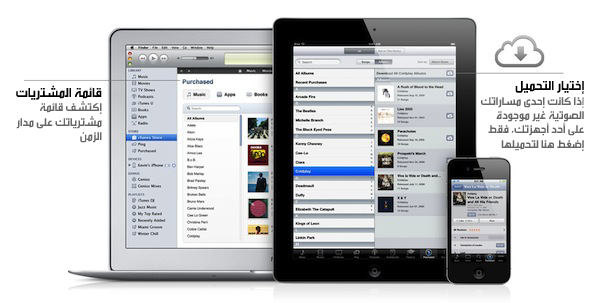 التطبيقات واي شيئ اشتريته من الآيتونز ستجده موجود على جميع أجهزتك. لاتقلق على مشترياتك السابقة التي قمت بها قبل عمل التحديث، فأبل لم يفوتها ذلك أبداً فهي منذ إطلاقها برنامج الآيتونز وهي تمكن مستخدميها من الإطلاع على قائمة مشترياتهم. فبإمكانك التعرف على تطبيقاتك التي قمت بشرائها من حسابك في السابق وإعادة تنزيلها على أي جهاز مرة أخرى وبشكل مجاني طالما أنك كنت قد إشتريتها من خلال نفس الحساب في وقت سابق ولن يهم إن كنت اشتريتها من خلال هذا الجهاز أو جهازاً آخراً كنت تملكه في السابق.