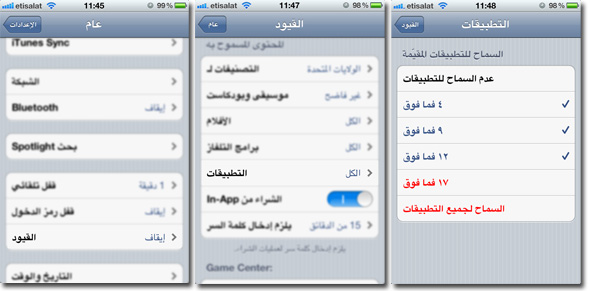 (للمزيد من المعلومات حول تقييد المحتويات والقفل الأبوي يمكنك مراجعة مقال “كيفية استخدام القيود للتحكم في خدمات الجهاز“)