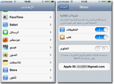 قم بالذهاب إلى الإعدادات > Store > ثم أغلق إختيار تنزيل التطبيقات تلقائياً