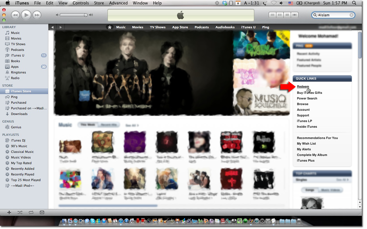 - إنتقل الى إختيار ”Redeem” والذي ستجده بأسفل قائمة ”New” والموجودة في صفحة ”Featured”.