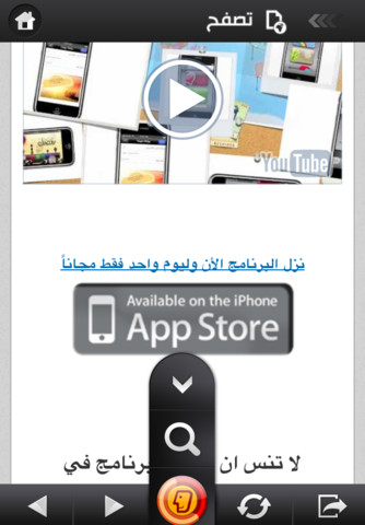 - اثناء التصفح اضغط على السهم حتى تخرج لك قائمة فرعية، اضغط على زر البحث لتبحث في الموقع عن آي شيئ ترغب في معرفة المزيد عنه