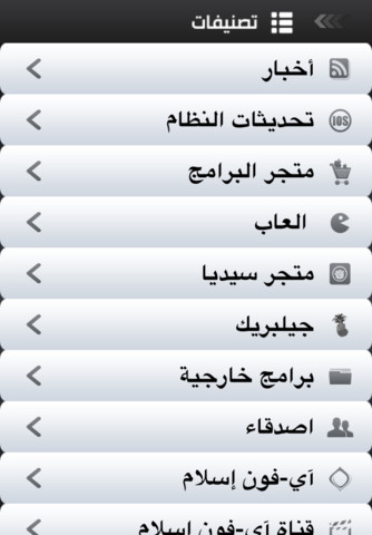 - التصنيفات ايضاً إضافة مميزة للتطبيق حتى تصل للقسم الذي تريده بسرعة وسهولة