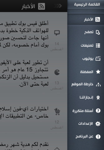 - موقع آي-فون إسلام يحتوي على اكثر من الف مقال وعشرات الاف من التعليقات الكثير منها مفيد وفيها مشاركة منكم واجابات على بعض اسئلتكم، ايضاً يحتوي الموقع على الكثير من الاقسام والوسوم والفيديو… الخ، باختصار موقع آي-إسلام ضخم جداً بفضل من الله ومعظم المحتوى مفيد والحمد لله، في السابق الوصول لكل هذا لم يكن سهلاً الا عن طريق الموقع الذي تشاهده من حاسبك الشخصي. لكن الان وحتى مع صغر حجم شاشة الآي فون والأيبود تاتش يمكنك الوصول الى معظم المحتويات بسهولة وتجد اجابة سؤالك ببساطة فقط تصفح القائمة الجانبية لتحصل على…