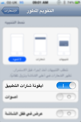 بعد ترقية المستخدمين إلى iOS 5 واجه الكثيرون مشكلة في الإشعارات وهي عدم ظهور أيقونات شارات التطبيقات (الرقم والدائرة الحمراء فوق التطبيقات) والتي تنبهنا إلي وجود إشعارات لم نرها (ونستخدم نحن هذه الأرقام للدلالة على التارخ الهجري في تطبيق التقويم الإسلامي المطور، لأن آبل لا تتيح طريقة غيرها) لكن بعد اختفاء هذه الشارات يظن الكثير أن البرامج غير متوافقة مع النظام الجديد ولا تعمل لكن الحقيقة المشكلة هي ان الخاصية مغلقة من مركز الإشعارات وفعليا الخدمة تعمل لكن تحتاج فقط لفتحها من مركز الإشعارات.