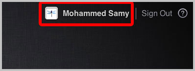 2- أعلى يمين ستجد إسمك قم بالضغط عليه