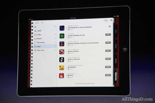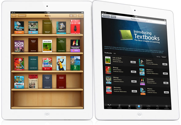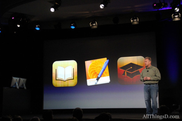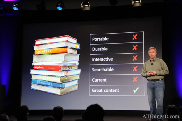 بدأت ابل المؤتمر بالتحدث عن التعليم واهميته وان عدد الخريجين بالولايات المتحده يساوى تقريبا 70% من عدد الشعب وفي بعض المناطق النائيه تقل النسبه إلى 60% لذلك قررت ابل ان تساهم في هذا المجال وهى فخوره بخدمه التعليم. وقد فكرت أبل كيف تقوم بمساعدة الطلبه ووجدت ان هناك مليون ونصف أمريكي يستخدمون الآي باد في مجال التعليم وفى مختلف المراحل فهناك تطبيقات تهم الأطفال والكبار لكن بالتفكير وجدت ان طلاب المدارس العليا والثانويه والجامعات لا يوجد ما يخدمهم بالشكل الكافى وذلك لأنهم يعتمدون بشكل اساسي علي الكتب الدراسيه الكبيره الحجم والضخمه والثقيله.