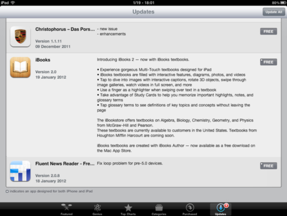 هذا التحديث لتطبيق iBooks يحتوى على امكانية تنزيل الكتب التفاعيلة لكن هذه الكتب يمكن تنزيلها فقط عن طريق الآي-باد، وهذا يعني لو كنت من ملاك الآي فون او الآي بود لن تستطيع تنزيل ال Textbooks، وهذه هي الخصائص الجديدة للإصدار الثاني من تطبيق iBooks