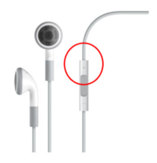 بقي الجانب الأيسر من الحلبة، كيف سيأمر الآردوينو الآيفون ببدأ التصوير بعد تغطية المقاومة؟ هناك عدة طرق، ولكني أستسلمت للأسهل، حينما تشتري الآيفون تأتي معه سماعات الأذن، على سلك من أسلاك السماعتين ستلاحظ وجود أزرار تحكم، واحدة من تلك تتحكم في رفع الصوت، وإن كنت لا تعلم هذه المعلومة فإن بنفس هذا الزر يمكنك أن تصور بمجرد الضغط عليه بعد تشغيل الكاميرا على الآيفون، كليك، وإذا بالآيفون يصور، رائع! أستطيع أن أستخدم هذا الزر لأتمتة التصوير، الدائرة الحمراء محيطة بالزر على الشكل على اليمين.