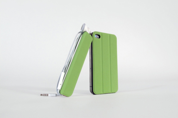 الآن نعود للملحق وتوضيح ما هو، هل تذكرون غطاء الآي باد الذكي؟ هذا الملحق فكرته مقتبسه منه وهو بالفعل يملك نفس الشكل والوظيفه تماماً لكن الشركه قامت ببعض التعديلات البسيطه لتمكنه من حل الكثير من المشاكل الصغيره التى تواجهنا. مثل استخدامه لجمع وصلة سلك السماعه الطويل لحل مشكله تعقيد السلك اثناء وضعه بحقيبتك، استخدامه لوضع الهاتف بزاويه 45 درجه لتراه امامك وتشاهده في اي وقت، هذا الملحق يلتصق بظهر الهاتف عن طريق اطار مغناطيسي صغير ورقيق تلصقه على الهاتف 4S أو 4 ثم تركب الملحق عليه، وهذا الشيء جعل ظهر الآي فون مغناطيسي فيمكنك لصقه باى سطح معدنى لتقوم مثل السبوره لتنقل منها بعض البيانات بدلا من الإمساك به. ويمكنكم مشاهده باقى المزايا من على موقعهم كما تستطيع أيضاً شراء الملحق الذى 19 دولار فقط من على صفحة المشروع ب kickStarter من هنا.