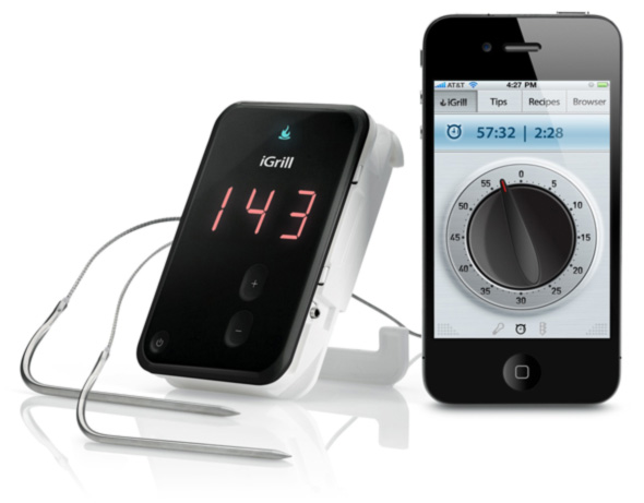 إن كنت من هواة إقامة حفلات الشواء فإليك هذا الملحق الذى حصل على أفضل ملحق بلوتوث في مؤتمر الهواتف العالمي CES 2011. مشكلة حفلات الشواء هى أن المسئول عنها يظل لساعات يجهز الطعام ولا يستمتع بالإحتفال مع اصدقائه وفكرة هذا الملحق هو عبارة عن جهاز صغير له طرفين معدن تقوم بوضعهم على الجريل الذى تشوى عليه ليظهر لك درجة الحرارة فتعلم توزيع الحرارة هل هو مناسب أم زائد وهو يتحمل حتى 400 درجة مئوية وعن طريق الآي فون الخاص بك تختار درجة حرارة معينة إن تخطاها الجريل يظهر لك تنبيه وتضع وقت معين أيضاً الذى تريد عنده تقليب الطعام ثم اذهب واستمتع مع اصدقائك فإذا اشتد الهواء أو زادت درجة الحرارة عن الحد الأقصى الذى وضعته فسوف يرسل لك تنبيه وعند مرور الوقت سوف يرسل لك أيضاً تنبيه مما يمكنك من الاستمتاع بالشوي وأيضاً اللعب مع أصدقائك