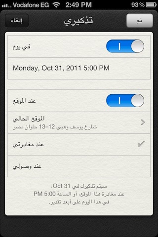 خاصية السياج الجغرافي كما يظهر في الصورة بأعلى خاصة بتحديد منطقة حولك مكانك ويتم استخدام السياج الجغرافي في تطبيقات مثل تطبيق التذكير الخاص بأبل حتى يذكرك بشيئ عن مغادرة مكان معين او الوصول الى مكان معين، وستجد هنا مقال كامل يشرح لك تطبيق التذكيرات…