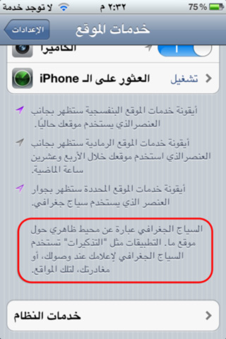 لسبب أو لآخر تقدم أبل مزايا وإضافات في نظام التشغيل iOS ولا تعلن عنها، مثل الأزرار المخفية في لوحة مفاتيح الآي باد التي تحدثنا عنها سابقاً لتسهيل الكتابة والتقليل من الاخطاء. وايضاً في التحديث الأخير 5.1 هناك ميزة غامضة بعض الشيئ في إعدادت تحديد الموقع وهي “السياج الجغرافي” أو “Geofence”