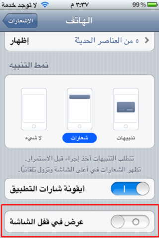 لكن هناك مشكلة خصوصية تضايق الكثيرين فإذا كنت ممن يهتمون بالخصوصية ويضعون كلمة مرور سرية لأنهم لا يريديون أن يطلع أي شخص على محتوى هاتفهم، فإن عرض التنبيهات على الشاشة يمكن أي شخص يضغط على زر الهوم أن يرى جزء من رسائلك الخاصة والبريد الإلكتروني ومن قام بالإتصال بك وأي تنبيهات أخرى من أي تطبيق تظهر في قفل الهاتف وهذا يعتبر خلل أمني غير منطقي من أبل لأننا نضع كلمة مرور لحماية الخصوصية وكان من الأفضل انه في حالة وجود رقم سري لا تقوم أبل بإظهار الإشعارات على شاشة القفل. الأمر الذي يضايق البعض اكثر أنه في حالة السحب على اسم متصل فإن الهاتف يجري اتصال بهذا الشخص حتى في حالة وجود رقم سري وهذا يمكن أي شخص من إجراء اتصال هاتفي والرد على المكالمات الفائتة وبدون إدخال كلمة المرور. فإذا كانت هذه المشكلة تضايقك قم بإغلاق ظهور التنبيهات في قفل الشاشة عبر الخطوات التالية: