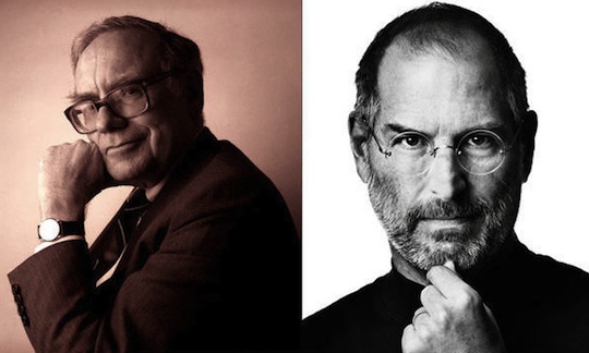 عندما نتحدث عن عالم الإبتكار في مجال التقنية نذكر بالطبع عبقري المجال “ستيف جوبز” لكن عندما نتحدث عن عالم إدارة الأموال فلا يوجد منافس ل “وارن بافت” الذي يعتبر أسطورة في مجال إدارة الأموال ودفعتة ليصبح رقم 3 في أغني أغنياء العالم، التقى بافيت بستيف جوبز قبل عامين من وفاة جوبز، وتحدث معه أن حسابات أبل بالبنوك الأمريكية تنمو بشكل ضخم وعلى أبل أستغلال ذلك وعرض على جوبز عدة اقتراحات مثل شراء شركات صغيرة أو بناء مصانع وكان الأقتراح الأهم لجوبز هو أن تقوم أبل بشراء أسهمها من البورصة، لكن ستيف جوبز رفض كل إقتراحات بافت وكان معجب بالأموال والسيولة التى تنمو ، الآن وصلت سيولة أبل بالبنوك إلى أكثر من مائة مليار دولار… كان سعر سهم أبل 200 دولار فقط وقت نصيحة بافت لجوبز بشراءه، وصل اليوم قيمة السهم إلى 540 دولار فلو استمع جوبز لنصيحة بافت لربحت أبل 270% في عامين فقط في عامين فقط وبدون مجهود لأن الأموال بالبنوك لا تربح لكن هذا كان إختيار جوبز. يمكنك رؤية هذه النصيحة من هنا… لكن بالنهاية لكل شخص رأيه وبافت عبقري مجالة وجوبز كان أيضاً. ووصلت قيمة أبل اليوم بالبورصة الأمريكية إلى 504 مليار دولار.