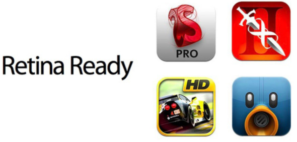 صدور الآي باد الجديد بشاشة ريتنا كان خبر سعيد بالنسبه لمستخدمي أبل فهذا أتاح لهم جودة شاشة غير مسبوقة، لكن كما سبق وأشرنا أن هذا الأمر يمثل عبء إضافي على المطوريين حيث ان عليهم إعادة تصميم كل تطبيقات الآي باد واليونيفرسال الخاصة بهم لتلائم الحجم الجديد لهذه الشاشة واعاده التصميم تعني ان يعاد تصميم كل رسوم التطبيق بحجم كبير لتصلح لشاشة الريتنا ثم يصغرها لتصلح للأي باد القديم. لماذا لا يقوم المصمم فقط بتكبير الصور؟ ولماذا يجب إعادة التصميم؟ السبب ان الصور اذا تم تكبيرها تفقد دقتها وتصبح غير واضحة اما الصور الكبيرة حين يتم تصغيرها لا تتأثر، وبالفعل صدر تحديثات لعدد من التطبيقات والألعاب لتلائم الحجم الجديد. ونستعرض بعض أشهر التطبيقات والتغير الذى حدث بعد الريتنا وعيوب هذا الأمر؟