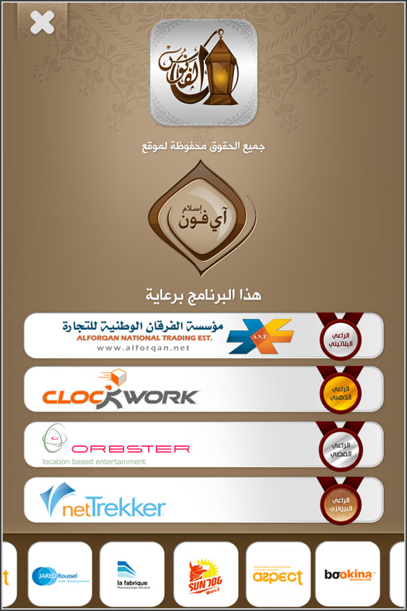 - باقي الرعاة سوف يتم وضع شعار مؤسستهم، او شركتهم، أو صورهم أو اسمائهم ان كانو أفراد ووصلة لموقعهم (كما موضح في الصورة)