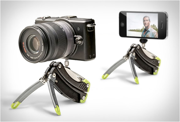 الكثير منا يعلم ما هي ” السكينة السويسرية ” حيث تجمع بين صغر الحجم والاستخدامات المتعددة مما يجعلها اختراع عبقري واعتدنا أن نراها تضم سكين وأداه لفتح العلب وغيرها من الأدوات البسيطة والهامة مما جعلها من أكثر الأدوات العملية حيث تحل عدد كبير من المشاكل بالإضافة لكونها صغيرة الحجم، لكن مصمموا Gerber Steady Multitool لم يكتفوا بتوفير 8 أدوات تقليدية في هذا الملحق لكنهم أجروا عليه تعديل وتم إضافة إمكانية تركيب كاميرا لتلتقط صور بشكل ثابت وأيضاً يمكن تركيب ملحق إضافي لتعليق الآي فون أو الآي بود لتتمكن من مشاهدة أي فيديو يعرض وأيضاً يمكنك من التقاط صور بدون اهتزاز الكاميرا في يدك أثناء التصوير ويمكن لهذا الملحق تحمل وزن أقصى 140 جرام للهاتف أو 340 جرام للكاميرا، يمكنك تركيب آي فون أو آي بود أو جالاكسي أو أي كاميرا ليتم تثبيتها كما يظهر في الصورة في أعلى.