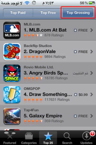 تعتمد أبل على قوة متجر البرامج بشكل كبير في بيع أجهزتها ولا ننسى مؤتمر أبل الذي أعلن فيه عن الآي باد الجديد به قارن “تيم كوك” تطبيقات في الآي باد بنظيرتها في أجهزة الأندرويد، ورغم كون المتجر هو مصدر قوة أجهزة أبل الأساسية وجميعناً يكاد يستخدمه بشكل يومي لكن هناك أمور لا نزال نجهلها عنه مثل تصنيف Top Grossing في قسم أفضل 25 تطبيق حيث لا يعلم عدد كبير من المستخدمين ماذا يعني؟ لأننا نرى تطبيقات القمة المجانية ” Top Free ” وهى أكثر التطبيقات المجانية تحميلاً وتطبيقات القمة المدفوعة ” Top Paid ” وهي التطبيقات المدفوعة الأكثر تحميلاً لكن عندما نقوم بفتح تصنيف Top Grossing نجد أن بعض التطبيقات التى تظهر مجانية وبعضها مدفوع فماذا يعني هذا التصنيف؟