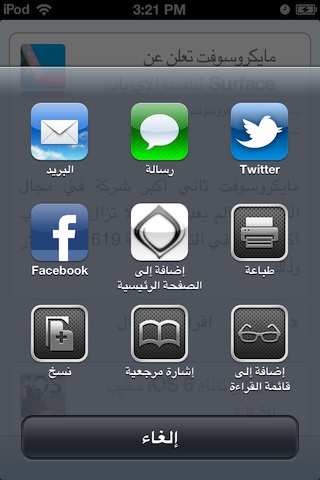 3 تحسين قائمة المشاركة : سابقاً كانت قائمة المشاركة في سفاري أو غيره من التطبيقات طولية وتحتوي نصوص فقط لكنها أصبحت الآن أكثر حيوية ووضوحاً.