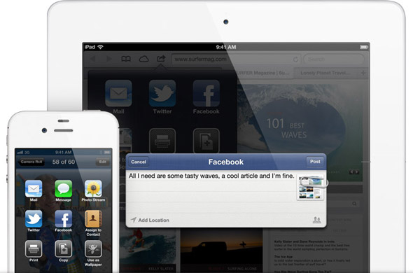 - المشاركة المباشرة من الكاميرا، سفاري، الخرائط، متجر البرامج، أي تيونز، مركز الالعاب.