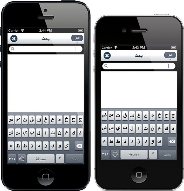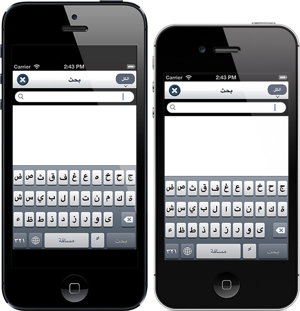 التغير أقل من المتوقع، نعم تم إضافة شريط أسود أسفل التطبيق مما رفع لوحة المفاتيح إلى أعلى كالمتوقع لكن هناك عامل آخر وهو أن شاشة الآي فون 5 تبدأ أسفل الوضع الذي اعتدتنا عليه في الآي فون 4 و 4S وذلك لأن أبل قامت بزيادة طول الشاشة 14% ليصبح 4 بوصة لكن زاد طول الهاتف نفسه 7% فقط وهو يعني أن أبل قللت المسافة بين الشاشة وأحرف الجهاز وأن شاشة الآي فون 5 ستبدأ أسفل الوضع القديم وتنتهى أعلى منه أيضاً وبالتالي ففي حالة كان التطبيق متوافق فسوف تظهر لوحة المفاتيح أسفل الوضع التقليدي بقليل كما يبدو في الصورة التقليدية.