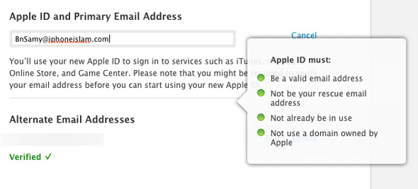 - الدومين الخاص بالبريد لا يجب أن يكون مملوك لأبل.