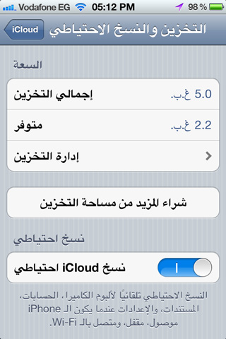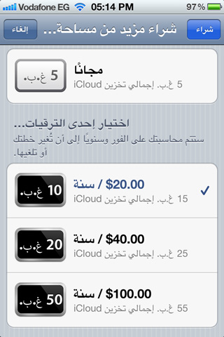 إذا كنت تعانى من نقص المساحه ولم تتمكن من توفير المساحه عن طريق حذف نسخ احتياطيه قديمه وبعد تحكمك في ما يتم تخزينة في النسخ الإحتياطية لم يتم توفير المساحة المطلوب هنا الحل هو شراء مساحه تخزين إضافية: