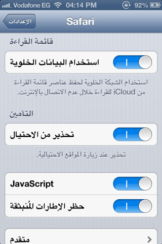 نعلم أن خاصية قائمة القراءة موجودة مسبقاً في متصفح السفاري عبر نظام الـ iOS 5، وكيف هي مهمة في حفظ الروابط أو المواقع المراد زيارتها لاحقاً، ولزيادة فعاليتها قامت أبل في نظام 6.0 الجديد بإمكانية حفظ هذه الروابط بصورة كاملة متضمنة الصور والمحتويات لإعادة زيارتها من دون اتصال لاحقاً، جرب هذه الميزة الآن على مقالة كاملة من جهاز الآي-فون إلى جهاز الآي-باد بعد حفظها ونقلها عبر خدمة الآي-كلاود على سبيل المثال. كما يمكنك من إيقاف الخدمة أو تفعيلها في حالة استخدام شبكات الهاتف وذلك بالذهاب إلى إعدادات ثم سفاري