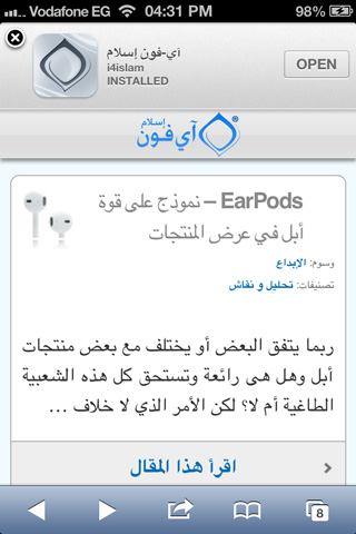 - تنبيهات ذكية منسدلة عند أعلى الشاشة تظهر للمستخدم عند تصفحه لموقع يحمل تطبيق معين في الآب-ستور.
