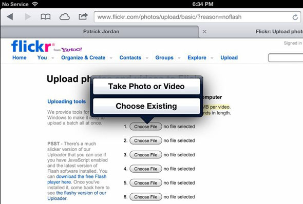 نعم الآن تستطيع أن تقوم برفع صورك و فيديوهاتك عبر تطبيق سفاري، شيء رائع بالفعل وميزة افتقدناها ولم نكن نراها إلا عن طريق كسر حماية الجهاز والتوجه إلى برنامج ال Cydia، فالآن أصبح يمكنك رفع الصور إلى المواقع المختلفة مثل فليكر وغيره من سفاري مباشرة.