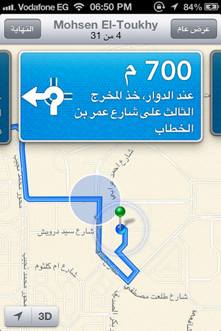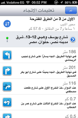 كما وفرت أبل خدمة منعطف بمنعطف Turn-by-Turn لكنها غير متوفرة في كل الدول حالياً، وقد ذكرت أبل أنها ستكون متوفرة هذا الشهر في دولتين عربيتين وهما مصر والمغرب، وبالطبع سوف يتم إضافة باقي الدول تباعاً خلال الفترة القادمة إن شاء الله، ويمكنك مشاهدة قائمة الدول المدعومة عبر هذا الرابط.