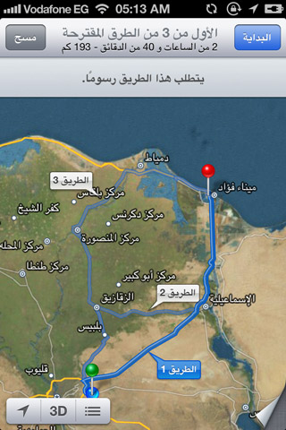 منذ صدور iOS 6 وخرائط أبل هى محور الحديث في مختلف المواقع التقنية، لكن الاهتمام انصب من الجميع على عيوب الخرائط والتي دفعت رئيس أبل نفسه إلى تقديم اعتذار للمستخدمين، وحالياً تقترح أبل على المستخدمين تجربة تطبيقات أخرى بديلة، لكن هذا ربما يكون متوافراً مجاناُ للمستخدمين في الدول الأوروبية وأمريكا لكن هذا الأمر ليس متاحاُ بسهولة في الدول العربية، وسيضطر المستخدم للتعامل مع خرائط أبل التي اهتمت المواقع بتوضيح عيوبها ولم تذكر كيف يتعامل معها، لذا نقدم في هذا المقال الدليل الكامل للتعامل مع خرائط أبل والاختلافات عن خرائط جوجل.