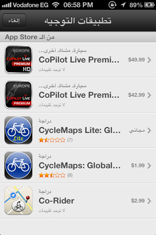 الملاحظ أيضاً في التطبيق أنه في حالة اختيارك الملاحة بواسطة المواصلات فإن التطبيق يعرض عليك تحميل بعض التطبيقات من متجر البرامج: