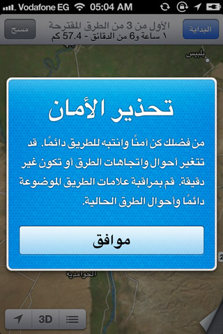 ويبدو أن أبل كانت تتوقع هذه الأخطاء 😀 فبمجرد بدء الملاحة يظهر لك تنبيه الأمان التالي:
