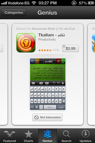 يعتبر متجر أبل الجديد واحد lن التغيرات الجديدة في نظام iOS 6، وقد أعجب بالتغيرات قطاع كبير من المستخدمين وذكروا أنه أصبح اكثر سهولة وامتاعا للمستخدمين، وهناك أيضاً من رأوا أن الشكل السابق أفضل لأنه يعرض كم أكبر من التطبيقات في الصفحة الواحدة، ولكن لوحظ أثناء استخدام التطبيق أنه يعاني من مشكلة البطئ سواء مطالعة التطبيقات الأكثر صعوداً “Top Charts” أو حتى مراجعة حسابك وما قمت بتنزيله، البطء مشكلة لا يمكن قبولها في التكنولوجيا، ويرجع سبب هذا البطء الملاحظ إلى خدمة Genius التي أصبحت قسم أساسي من أقسام المتجر.
