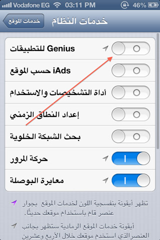 خدمة Genius تقوم بمتابعة ما تقوم بمشاهدته وشراءه من التطبيقات وحتى تحركك لتظهر لك تطبيقات تتناسب مع موقعك الحالي أو الأماكن التي تزورها والتطبيقات التي تستخدمها لكن هذا يؤثر سلباً على السرعة فإن كنت تعانى من تلك المشكلة قم بإغلاق خدمة الجينيس. عن طريق اتباع الخطوات التالية :