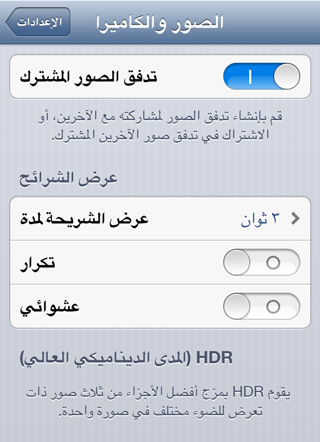 1 في البداية قم بتفعيل عبر الذهاب إلى الإعدادات > الصور والكاميرا > وفعل تدفق الصور المشترك
