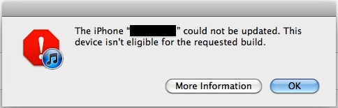 لا أستطيع الترقية سواء بالتحديث من الجهاز أو بالآي تونز وحتى الريستور لا يعمل وتظهر لي الصورة التالية:
