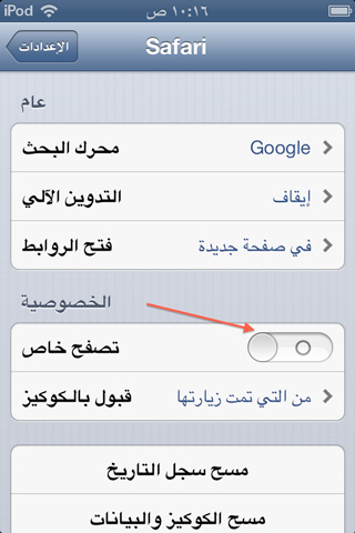 حل المشكلة: في حالة التصفح الآمن يمكنك إلغاءه وذلك بالذهاب إلى إعدادات ثم سفاري وإغلاق “تصفح خاص” ويمكن الاطلاع على مقالنا الخاص بالتصفح الآمن من خلال هذا الرابط.