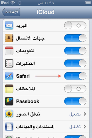 أما بالنسبة لمزامنة التبويبات واختلافها فيمكن إيقافها من السحابة إذا كنت لا تريدها وذلك بالذهاب إلى الإعدادات ثم iCloud وإغلاقها.