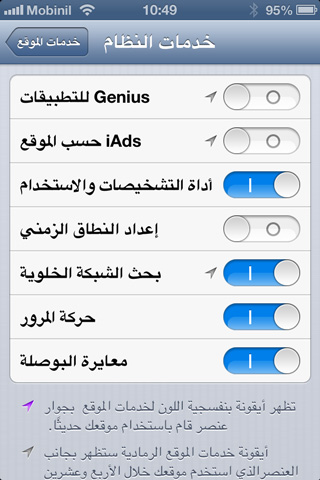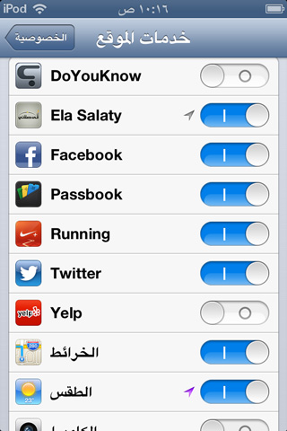 حل المشكلة: يمكنك الذهاب إلى الإعدادات ثم الخصوصية ثم خدمات الموقع وقم بإيقاف الخدمة للتطبيقات التي لا تريدها: