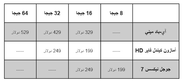 تعليق آي-فون إسلام: إذا كنت ستشتري تابلت واي فاي والسعر عامل حيوي بالنسبة لك فإن جهاز أمازون هو الأفضل وجوجل نيكسس بعد تحديثه المرتقب ، أما إذا كنت تريد نسخة 4G فكما ذكرنا سابقاً ليس أمامك سوى الآي باد. وأيضاً لاحظ وجود نسخة 64 جيجا فقط في الآي باد.