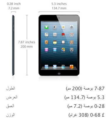 - الآي باد ميني أي معالج ثنائي النواة 1 جيجا وكارت ذاكرة 512 ميجا.